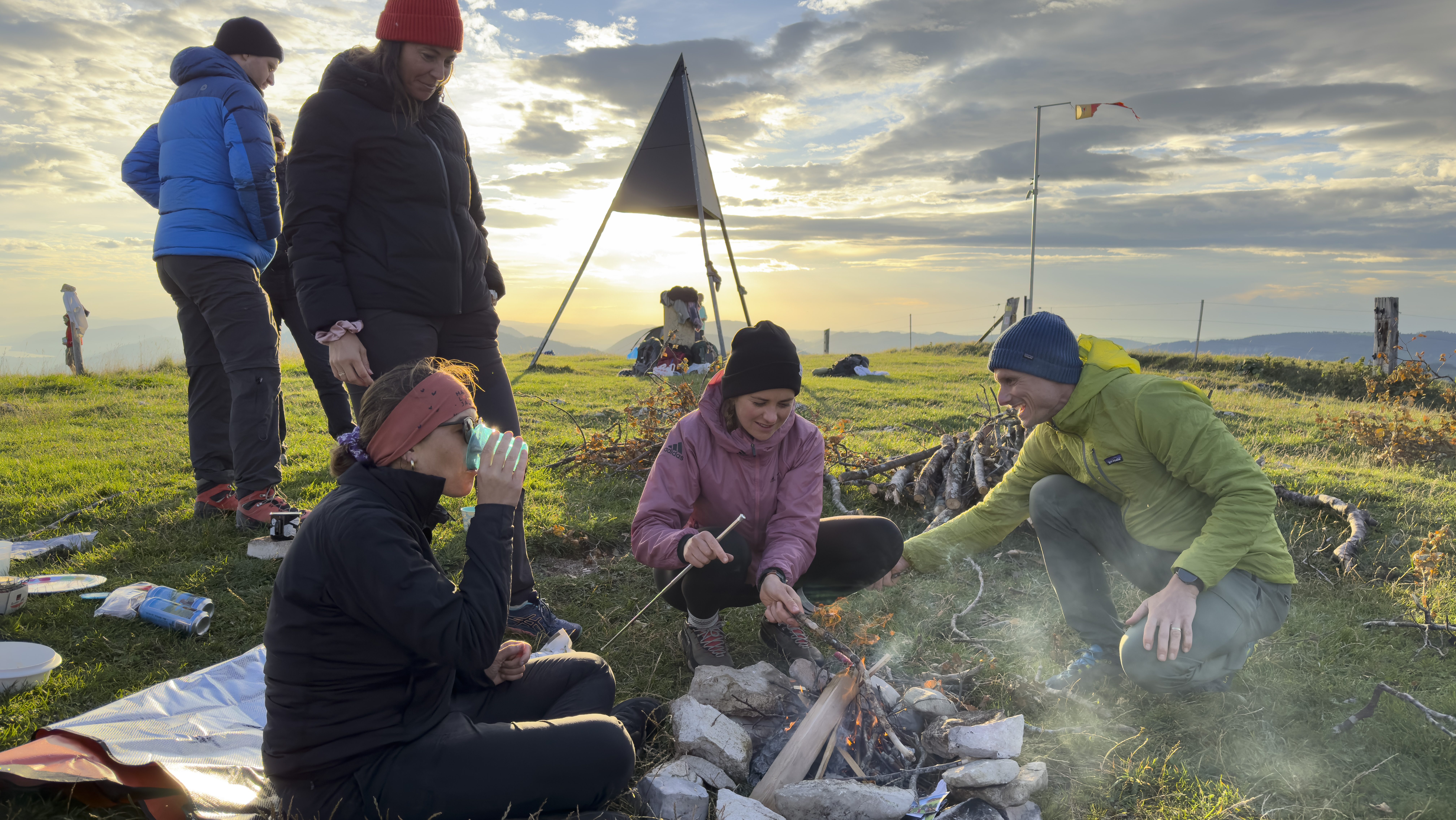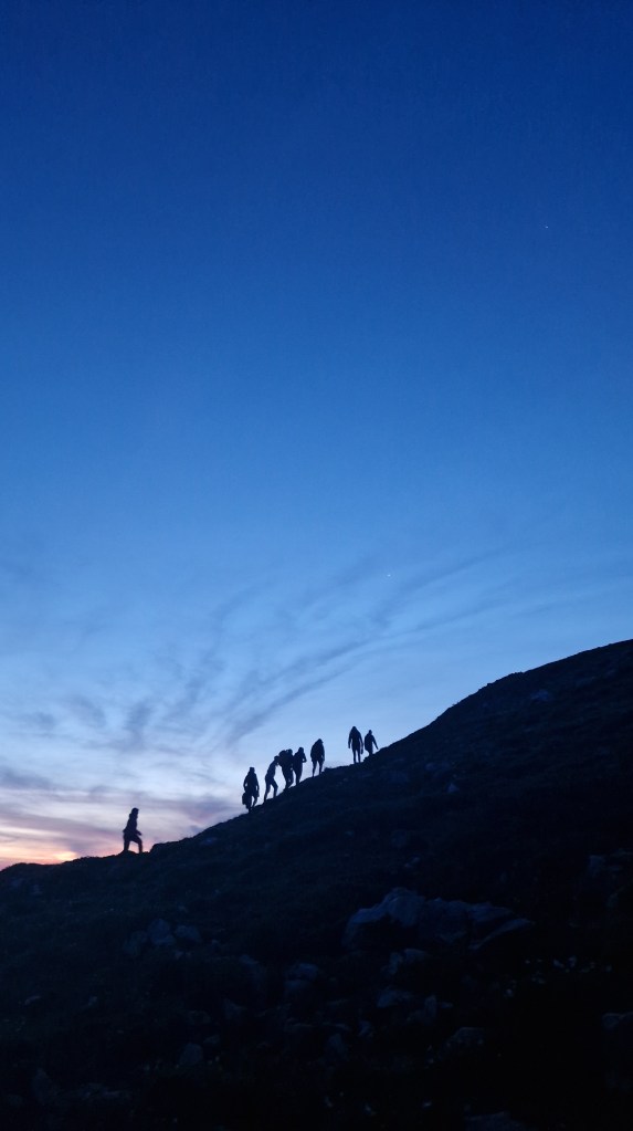Spannender Aufstieg mit Kraxelstellen zum Biwakplatz. Apero und Füürle. Grandioser Sonnenuntergang. Einschlafen beim Sterne zählen. ZMörgele und gemütlicher Abstieg.